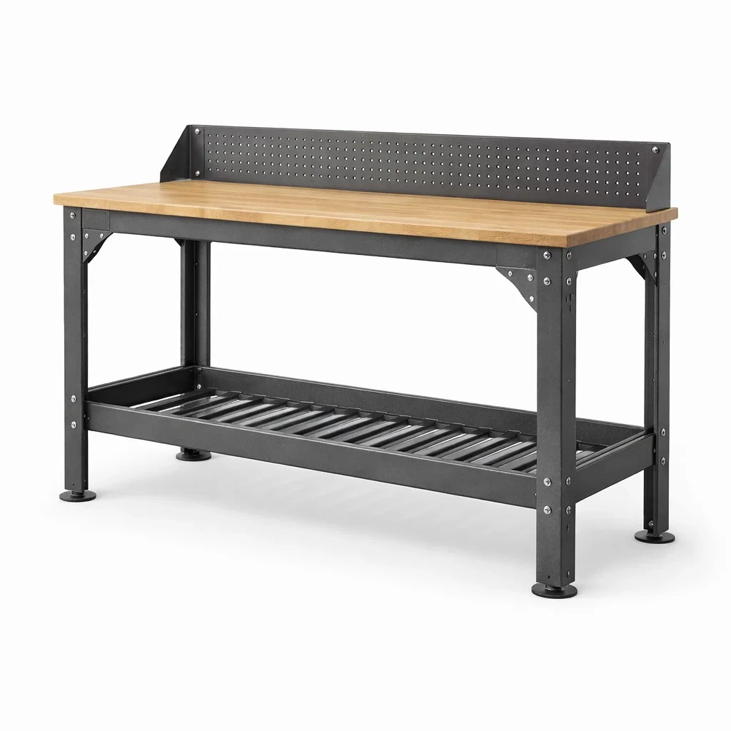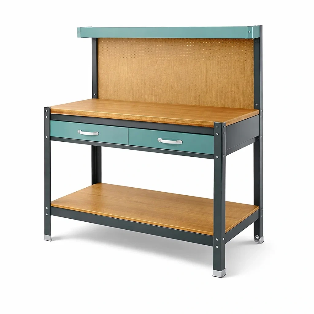 Établi en Bois et Métal avec Panneau Perforé 120x60x90 cm