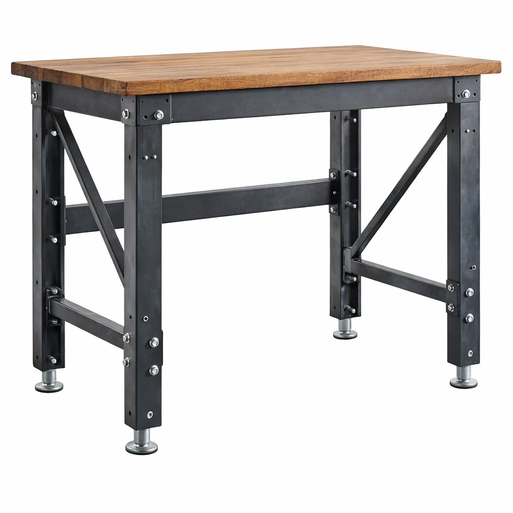 Établi en Métal avec Plateau en Bois de Hêtre 120x60x150 cm