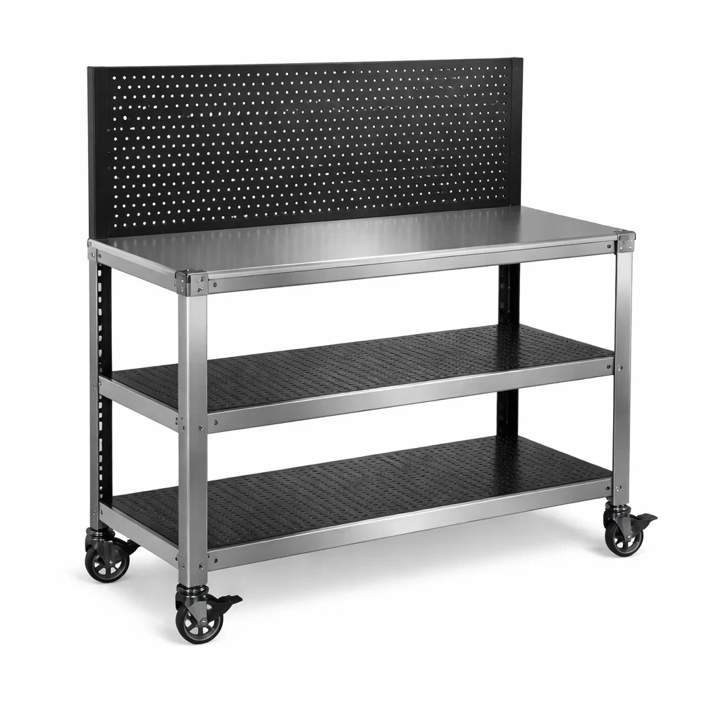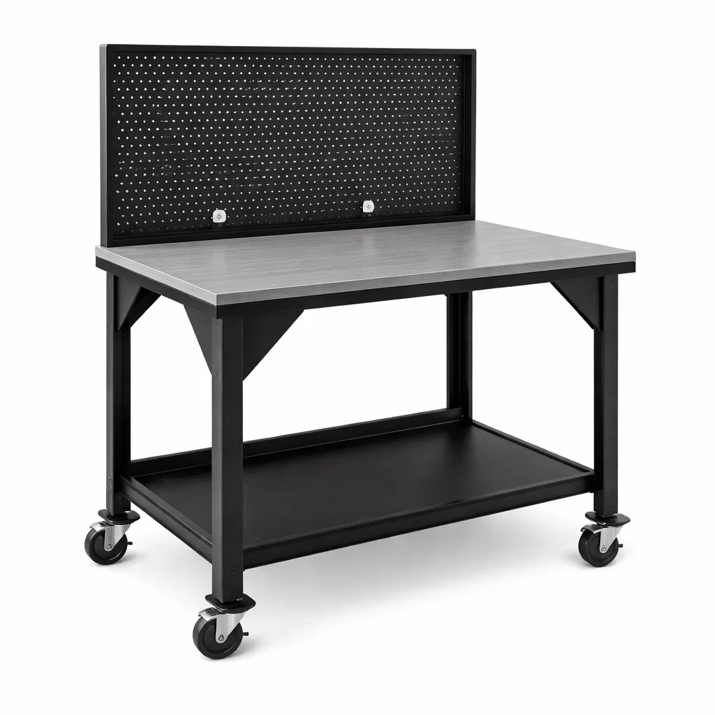 Établi Roulant en Métal et Bois avec Panneau à Outils