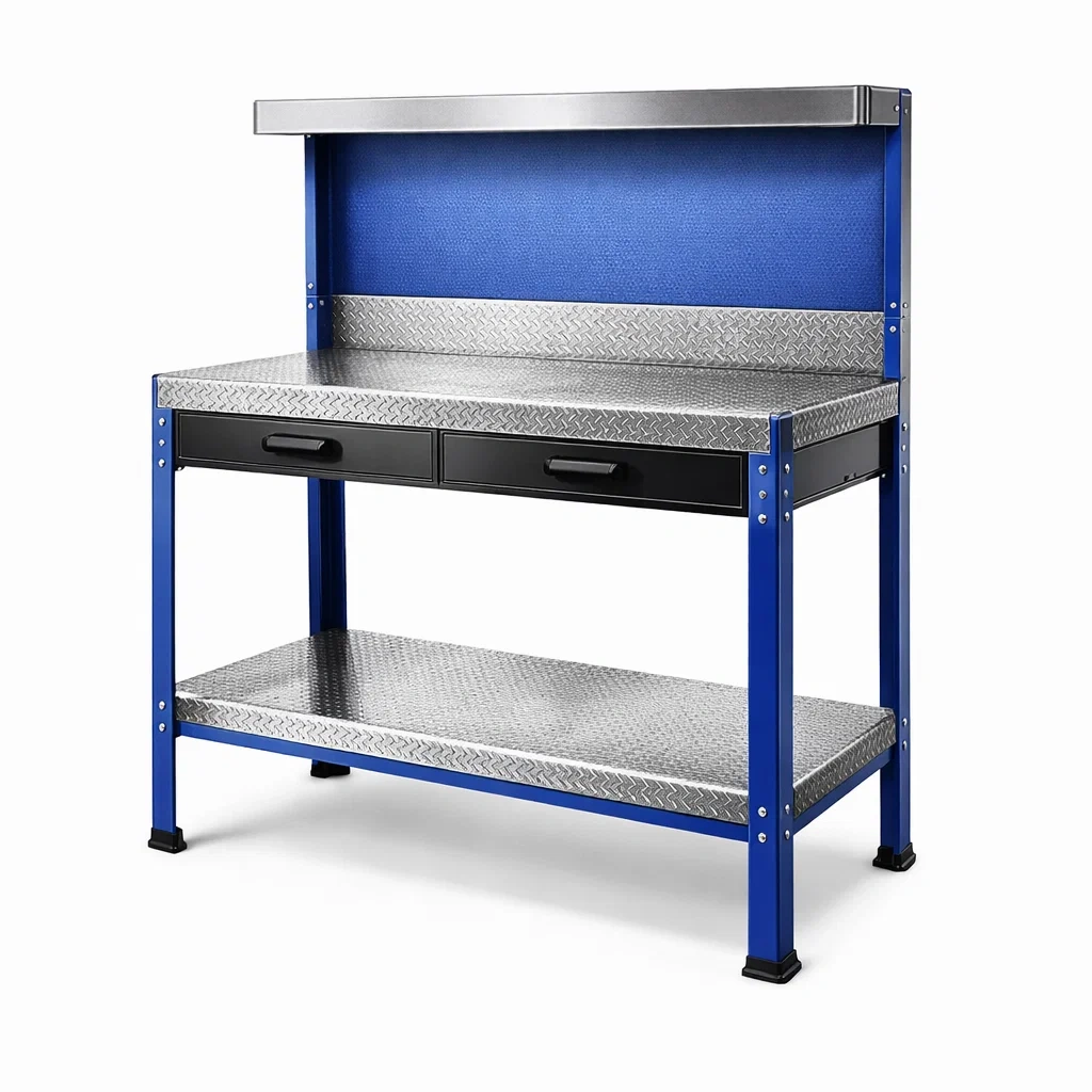 Établi en Métal avec Étagère et Tiroirs 120x60x150 cm Bleu