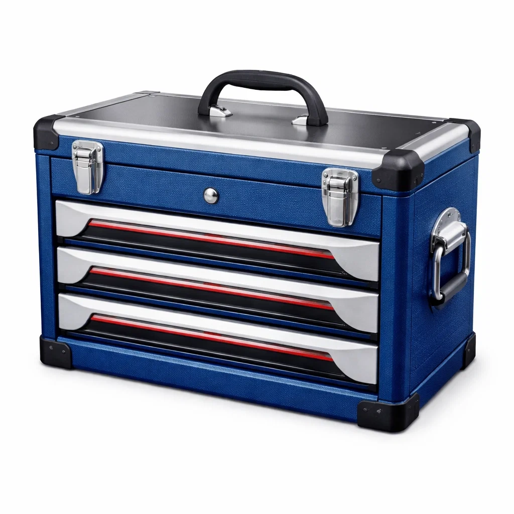 Boîte à outils métallique avec 3 tiroirs bleu