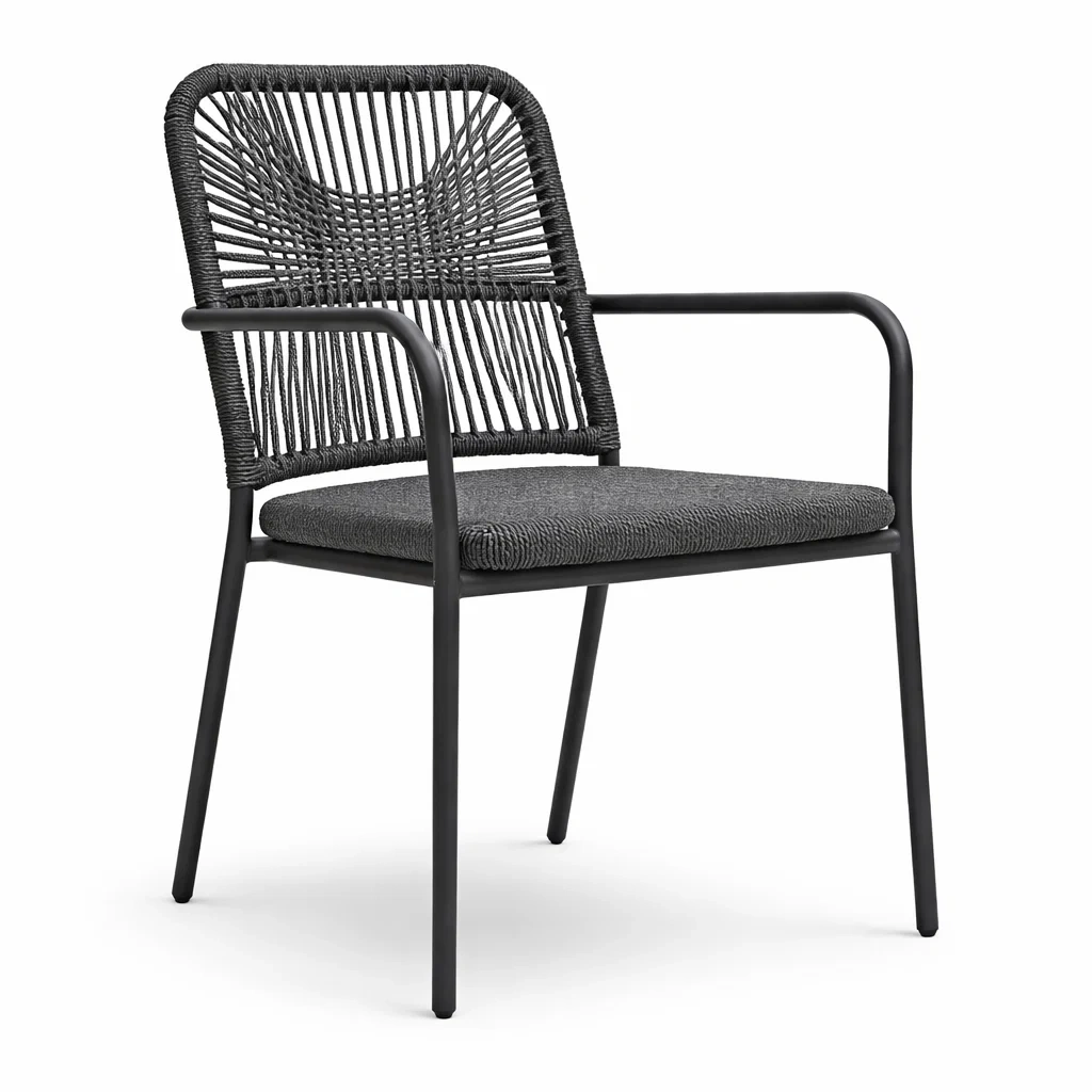 Structure : Cadre en acier, dossier en résine tressée, coussin de siège avec rembourrage en mousse.